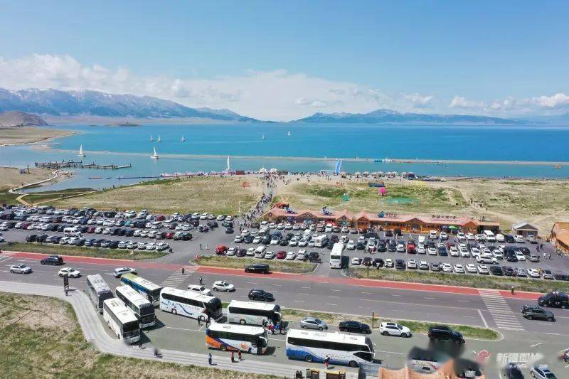 赛里木湖景区停车场停满车辆。孙玉新摄