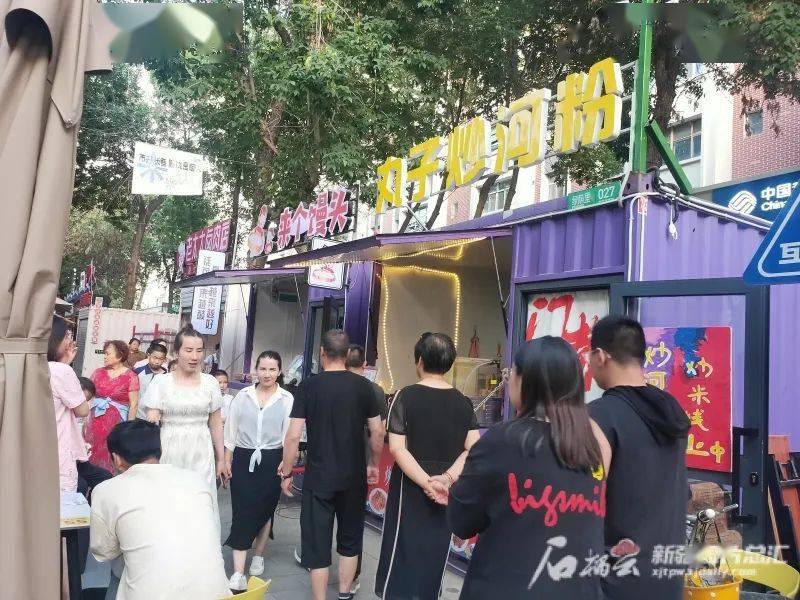 6月30日,在石河子市建设路文化商业步行街,不少游客趁假期和亲友相聚品美食。杨璐铭摄