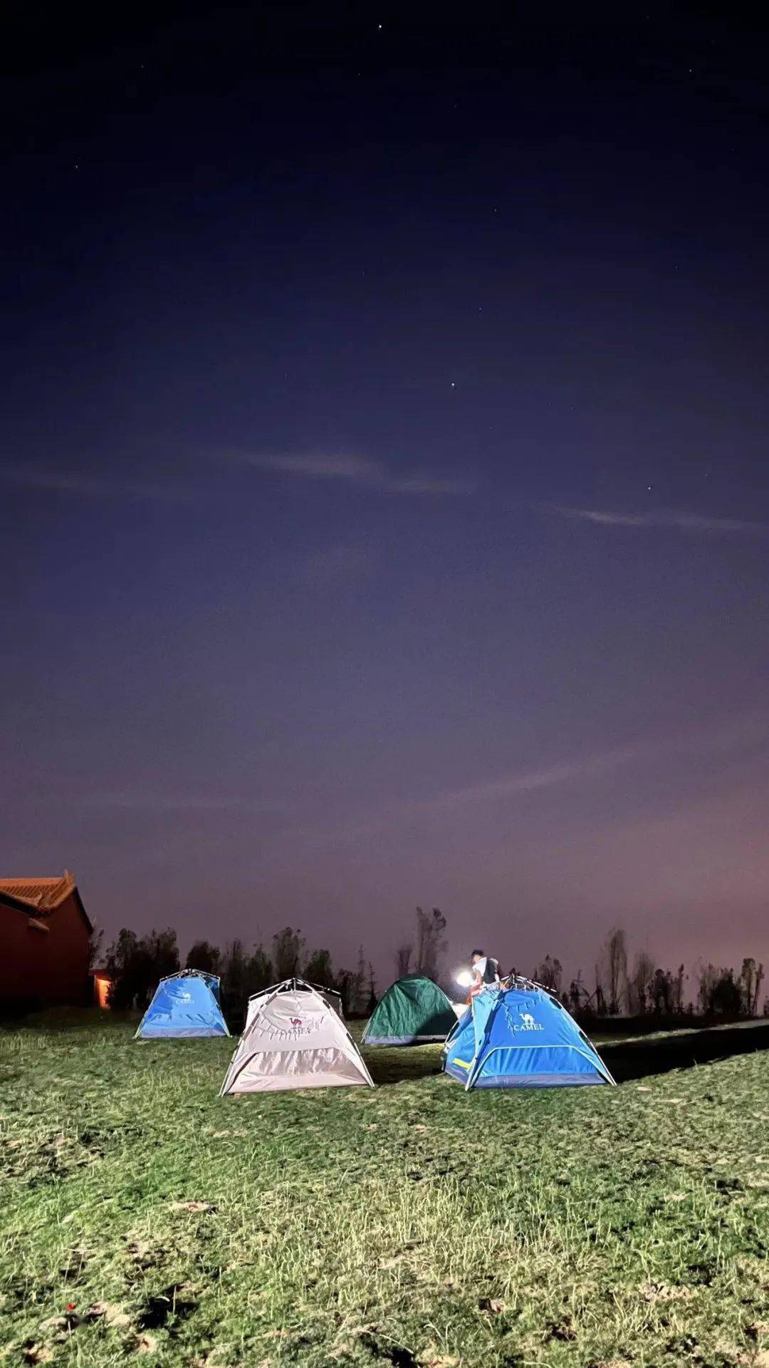 如果自带帐篷,晚上 免费露营,前提是需要购买 小马高原门票。如果没有帐篷,租帐篷98元/个,能躺2个大人,一个3岁小孩。如果一家四口,建议租两个帐篷。早上能看日出, 骑马拍照很出片,就像在大草原!大概4点左右天就亮了,上面空气新鲜,天气凉爽,配套设施也很全,在明清园有卫生间,晚上有农家院送餐,有饮料扫码机,有充电宝,有插座。建议周末遛娃体验露营乐趣的可以考虑,帐篷附近没有蚊子,厕所有一些,带好洗漱,孩子备点长袖和驱蚊产品,夜间看好孩子,不要乱跑,注意安全。