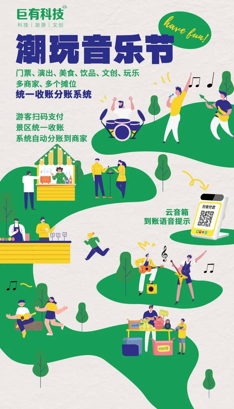 巨有科技以业务平台中的产品中心为核心,票务系统、餐饮系统、零售系统、数字支付系统、运营管控平台为支撑,实现了景区游乐门票、精品民宿、特色餐饮、休闲采摘、露营基地、游船观光、单车租赁、展览中心等各类资源进行了有机整合。