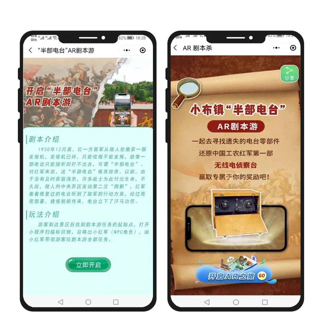 宁都小布镇的AR剧本杀,就是根据民国时期的“半部电台”剧情转化成的剧本,让参与市民代入剧本人物,带着游戏任务穿梭在园区内民国历史建筑之中。
