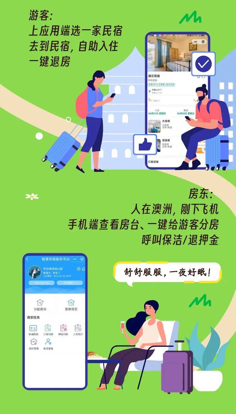 开启无人值守,24小时自助入住模式,游客可以选择使用密码或者手机蓝牙打开房间,轻松办理入住手续。