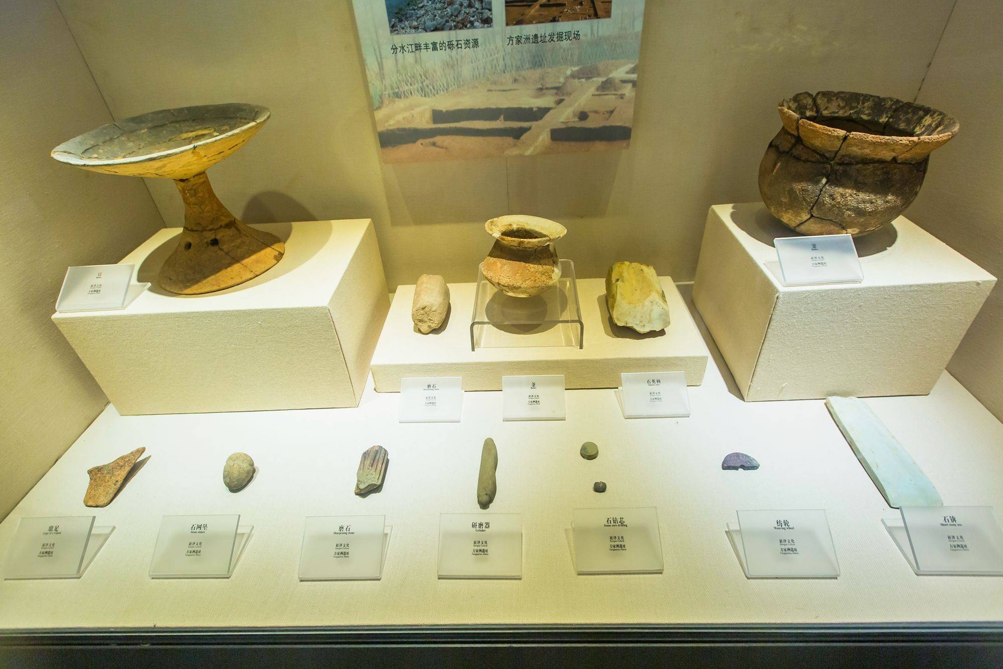 方家洲遗址出土的石器多种多样,釜、纺轮、研磨器……这些朴拙的用具正代表着当时生产力和生产技术的水平,而人类也正是这样从粗到细,从落后到文明一步步走来的。