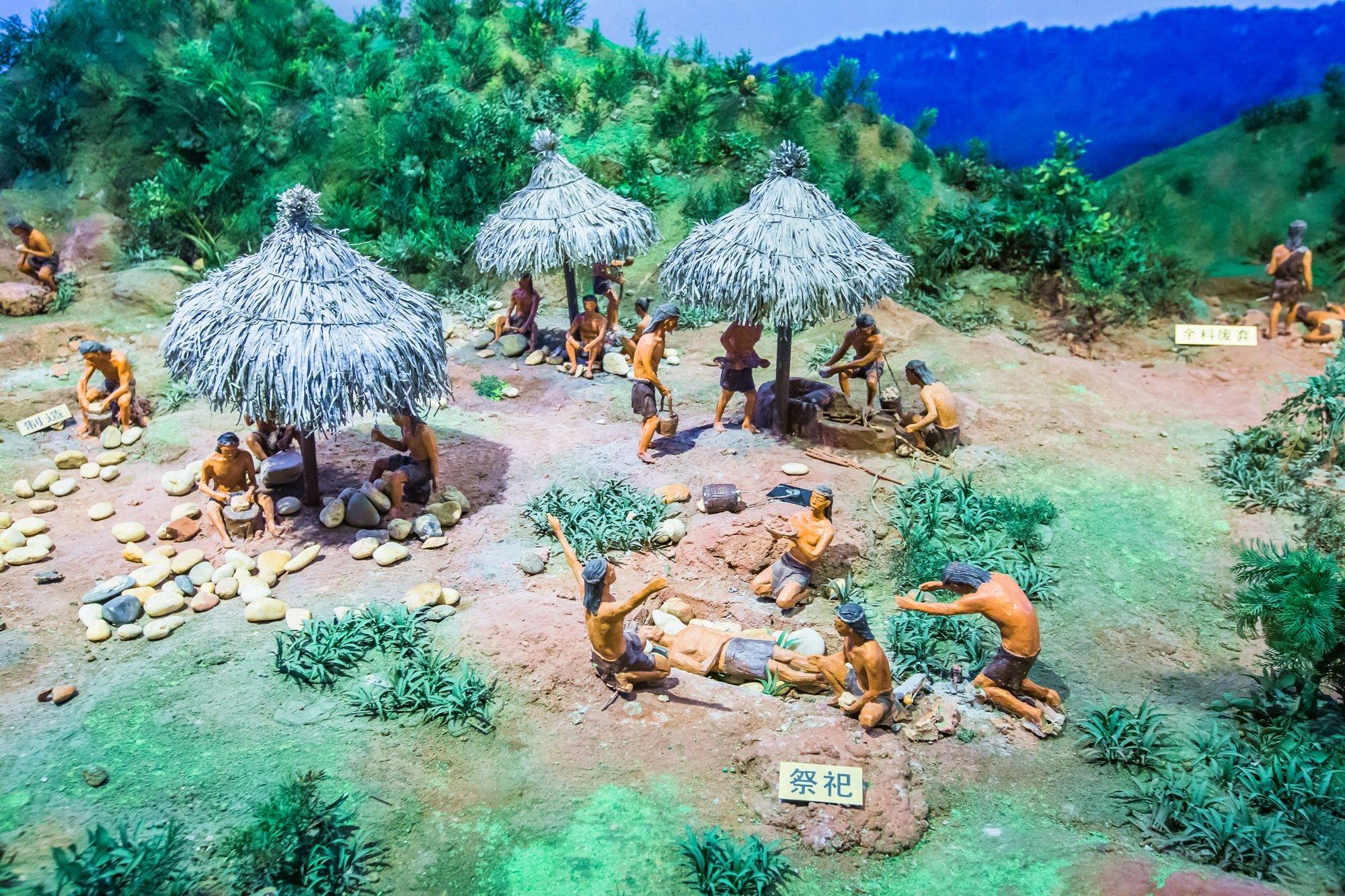 桐庐是浙江古代文明发源地之一,早在一万多年前就有人类活动。生动有趣的场景复原了先人在这片土地上生活、劳作的场面,人们聚族而居,协同合力,开创了丰富灿烂的史前文明。