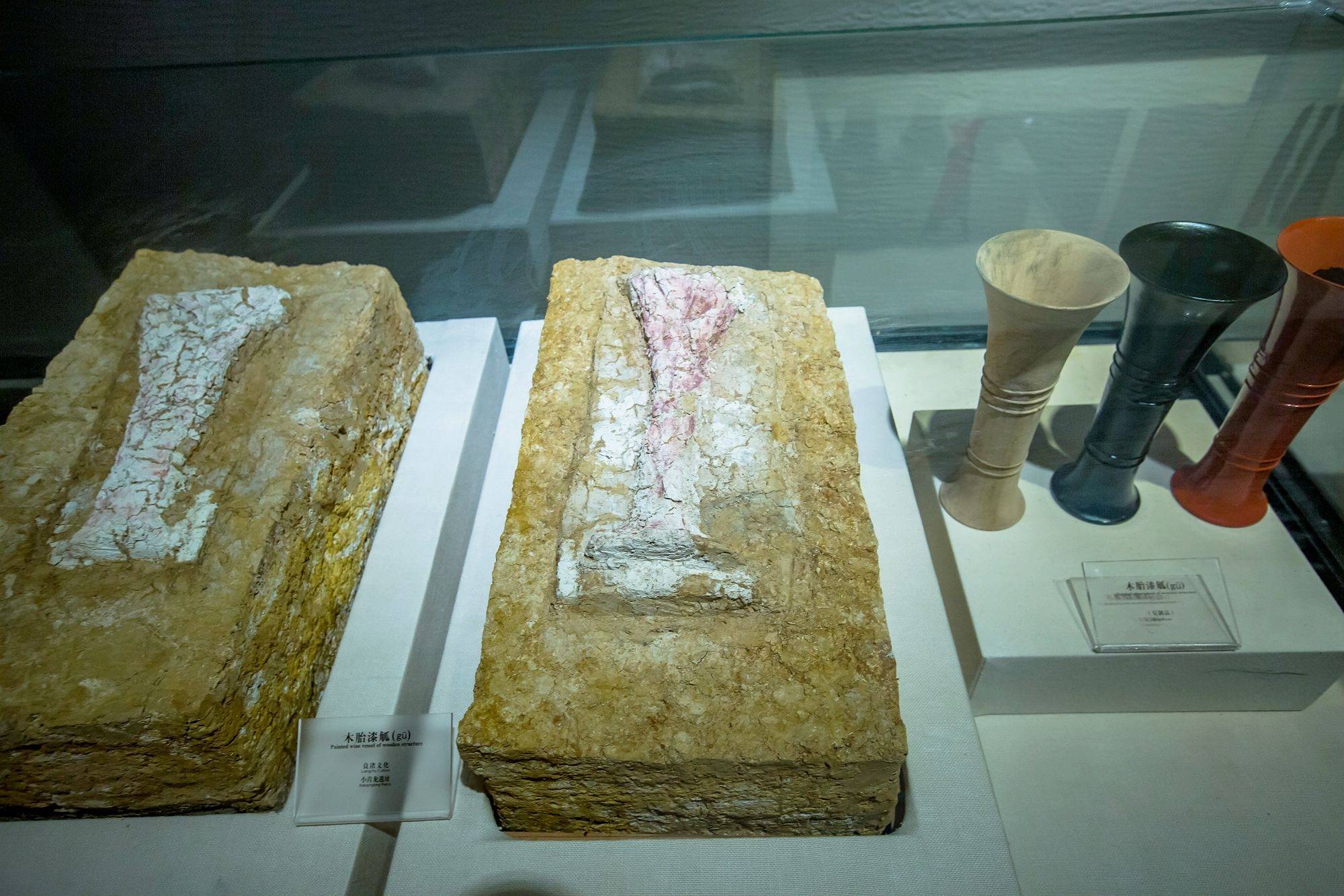 展柜内有复原后的文物,也有牢牢和土地生长在一起难以分开的器物,人们通过现代技术进行复制,它们犹如图文并茂的历史书籍,生动地展示着桐庐的文明历程。