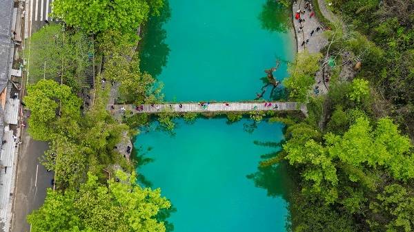 “小七孔绝对适合拍照,能拍出‘绿野仙踪’般的氛围感大片。”文旅推荐官董又嘉说,“令我印象最深的就是卧龙潭,潭水颜色很奇妙,水色由浅入深从淡淡的抹茶绿到浓郁的翠绿,让每一位走近它的游客,都会惊诧于它那湛蓝色的潭水。”