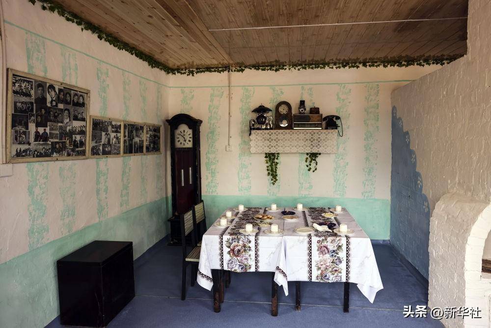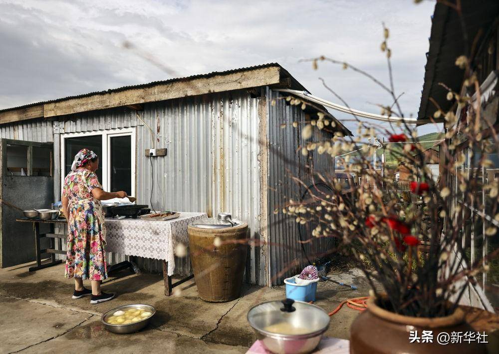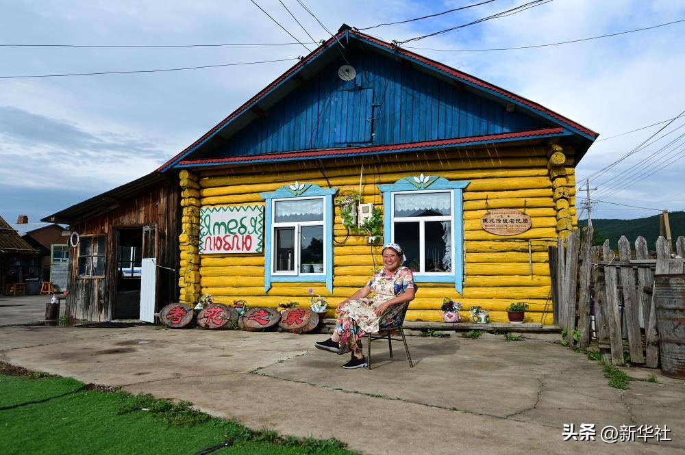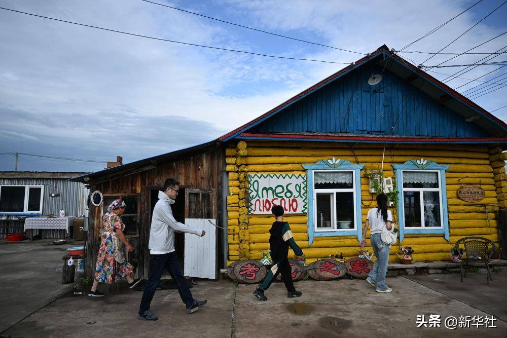 6月28日,游客在考占花家的俄式传统民居内用餐。