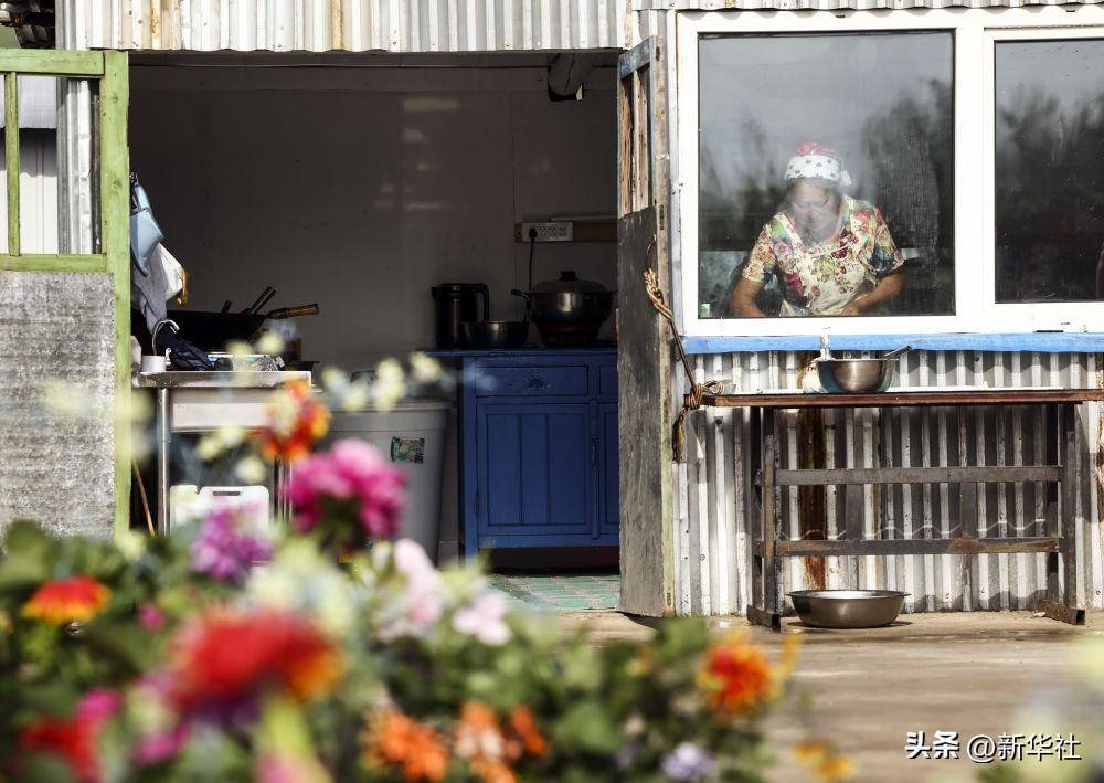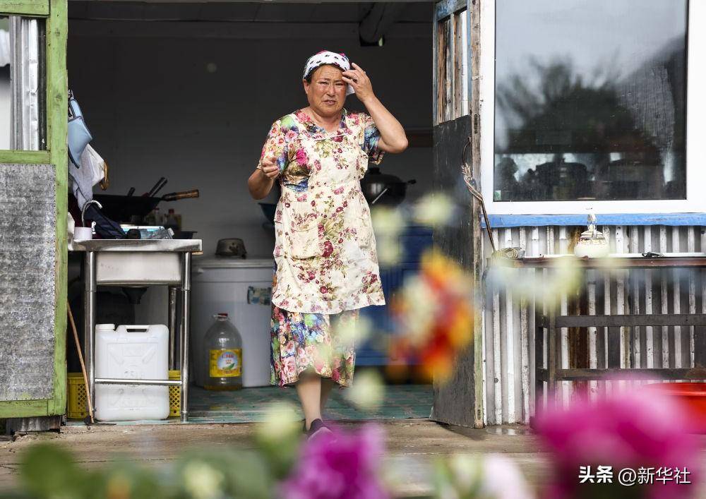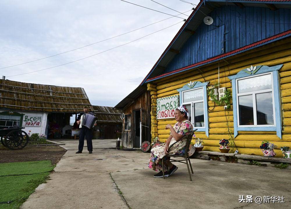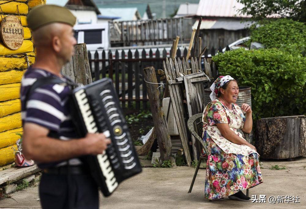 6月28日,考占花(左)为游客们唱歌,萨沙在拉手风琴。考占花是萨沙的嫂子。
