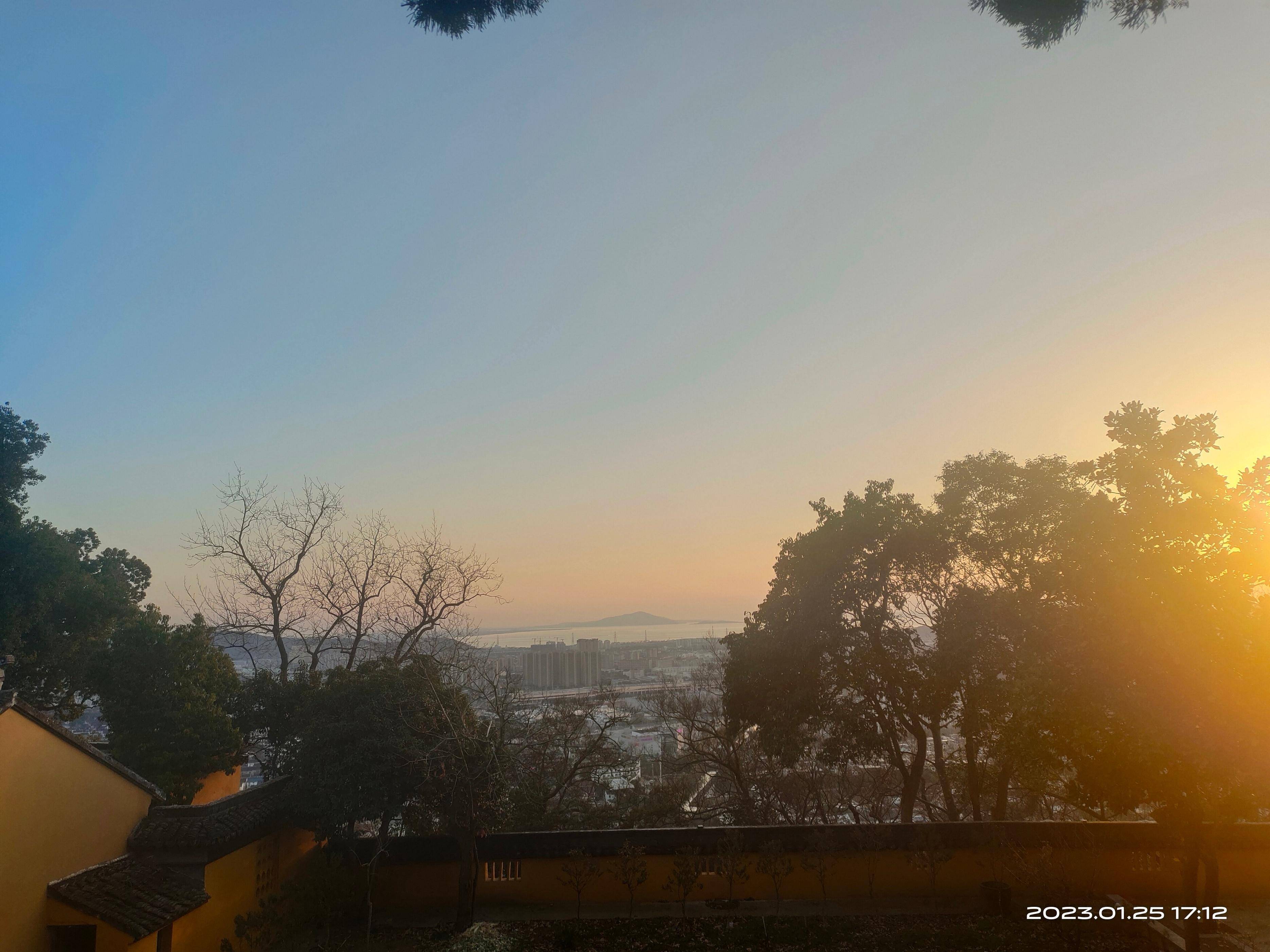 我到达的时候,晚鼓已敲响,只有我一个人参观了塔前。我绕着塔走了三圈,发现是后人捐款重建的,还扫了二维码捐了点力量。出了寺院,站在门口的台阶上,夕阳西下,太湖波光粼粼,地平人静,完全没有环境干扰。