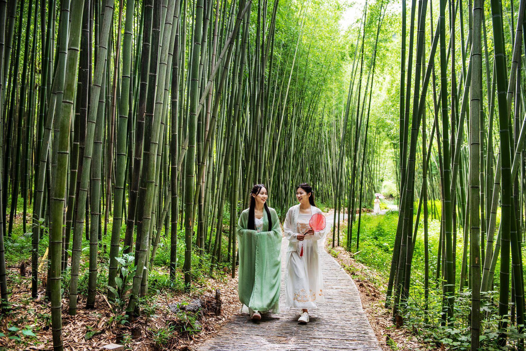 重渡沟有数万公顷竹林、千泉百瀑以及农业文化村。这些地方都适合表演汉服。