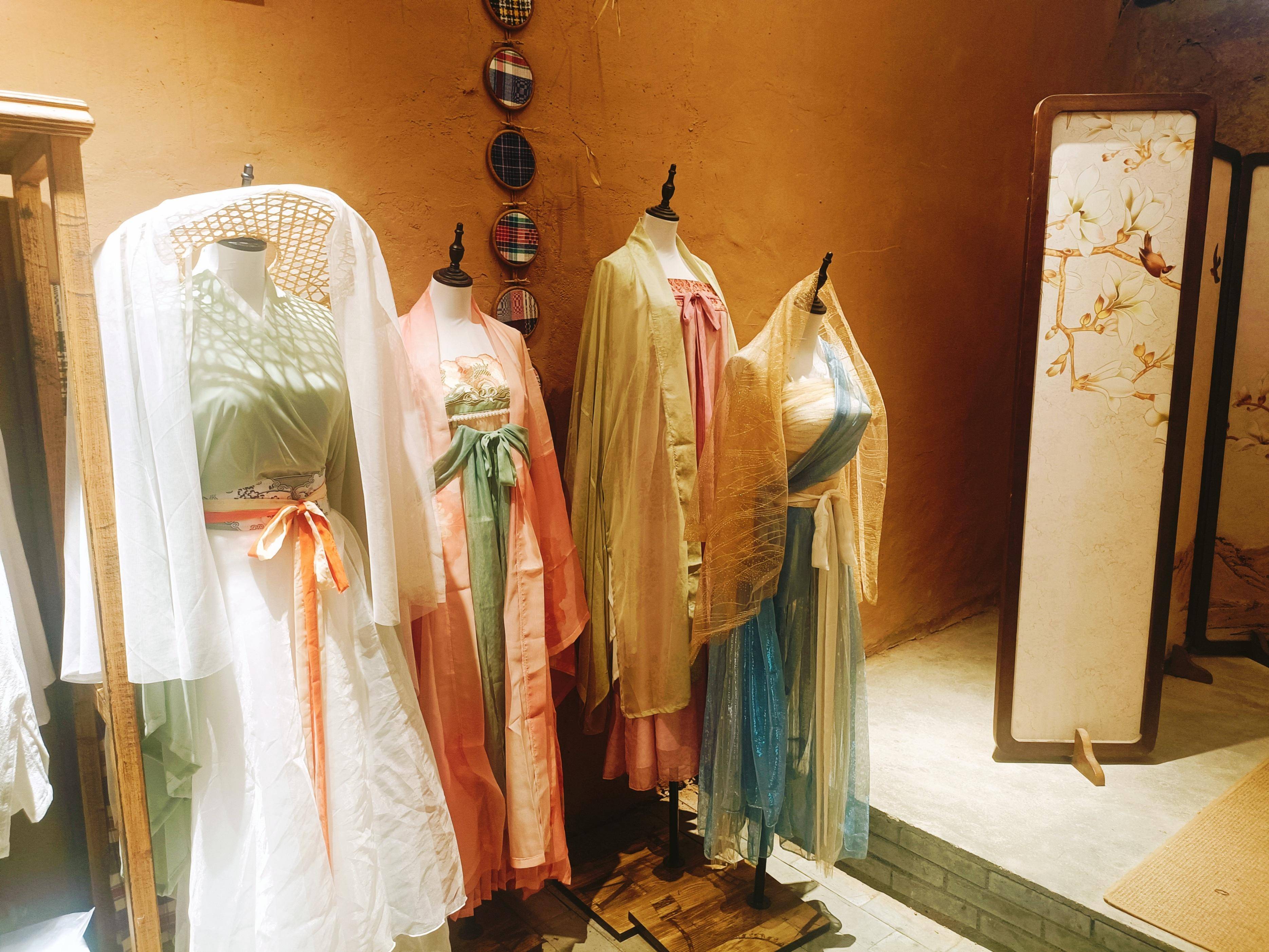 汉服的经营者闻讯也心动了。卓业汉服体验店、一线织艺汉服博物馆、苗疆姑娘体验馆相继入驻,一夜之间出现了十家汉服体验店。风景如画的场景充满了仙女公主和骑着白马的年轻女士,他们带着剑漫游世界。