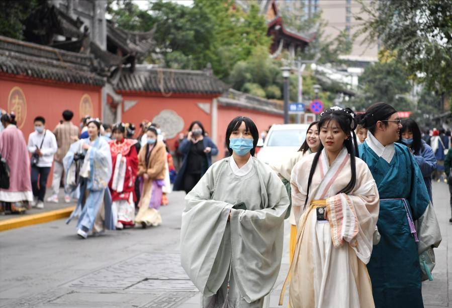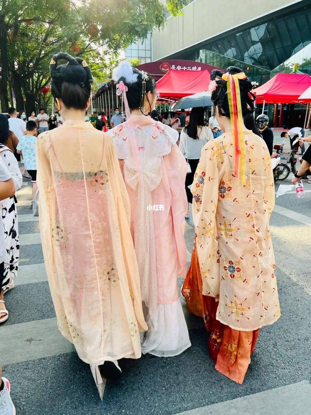 西安。作为世界著名的旅游目的地,参观长安汉服已经成为游览西安的必游体验之一。西安也成为了一座充满汉服的城市,但并不违背和谐。漫步西安的古建筑,有种梦回长安、梦回大唐的感觉。在短视频平台上,各种有汉服签名的内容随处可见。