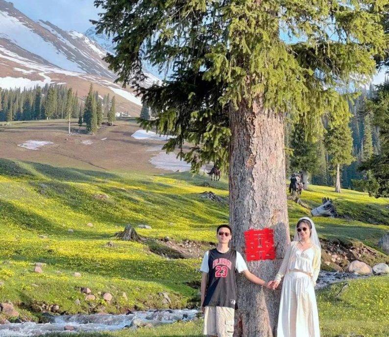 游钓途中,两人举办了一场特别的婚礼,没有隆重的仪式,也没有热闹的宾客。倪女士头戴简单的头纱,和小寻肩并肩坐在草地上,看着远处的皑皑雪山。