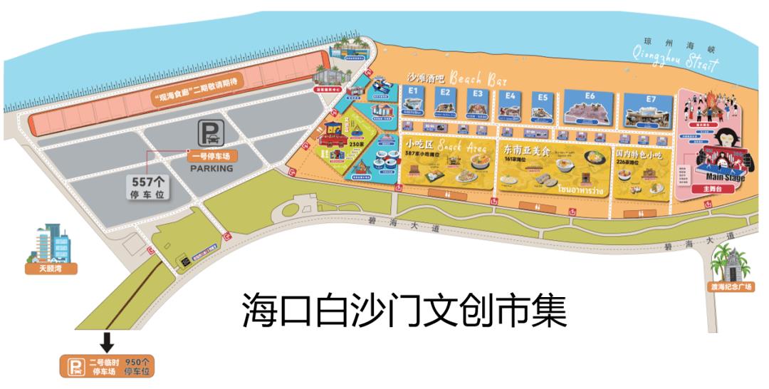 让我们从规模开始。官方宣传的是亚洲最大的海滩夜市。在我看来,这只是一个噱头。对于这一点,大家不必太较真,就像海口丁村的机车海鲜广场一样。因为没有统计亚洲有多少个海滩夜市、有多大。但它真的很大很大很大,不管是开幕前航拍短视频还是现场用脚丈量,场面真的很壮观。如果把所有的摊位都逛一遍的话,也需要一个小时!事实上,官方数据显示,其占地面积为6万平方米。这是什么概念?它相当于沉阳故宫,甚至北京故宫也是它的十二分之一。从这个层面来说,称自己为“亚洲第一”也未尝不可!