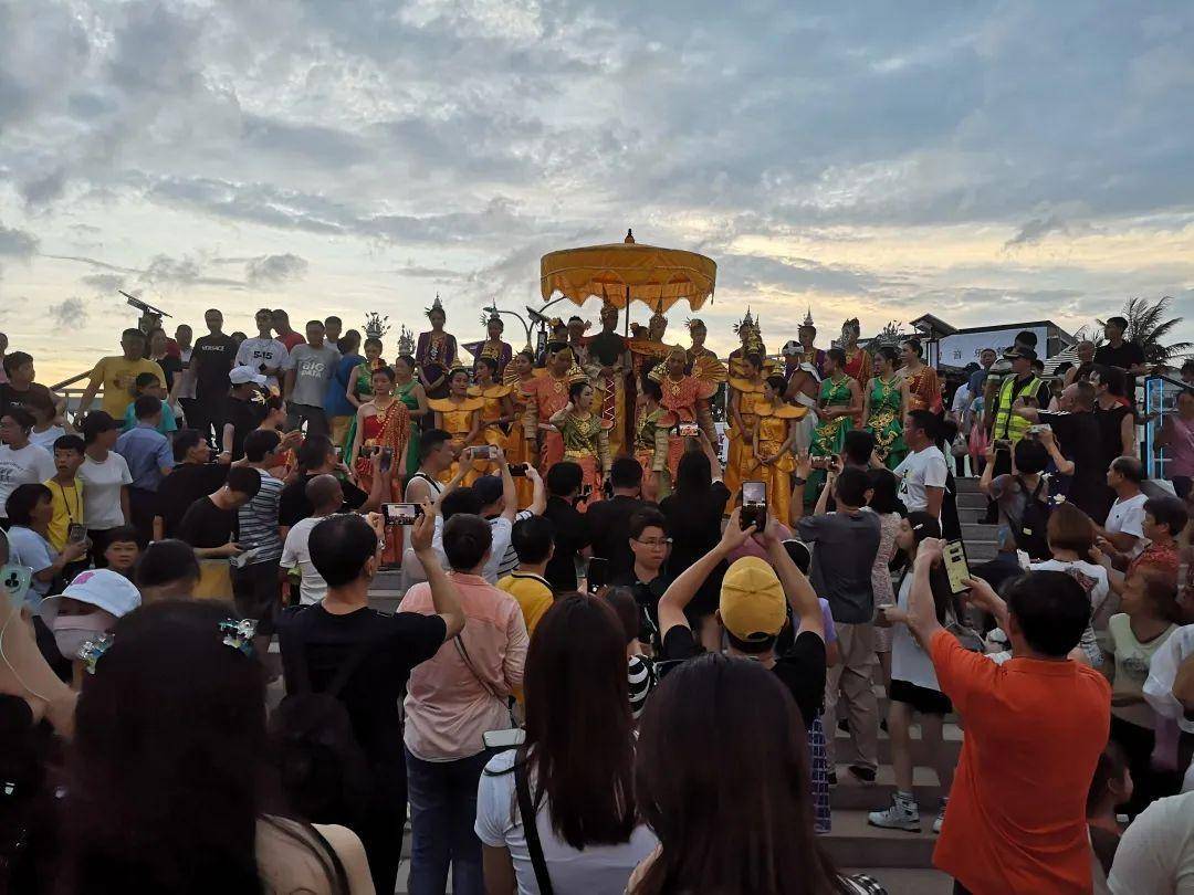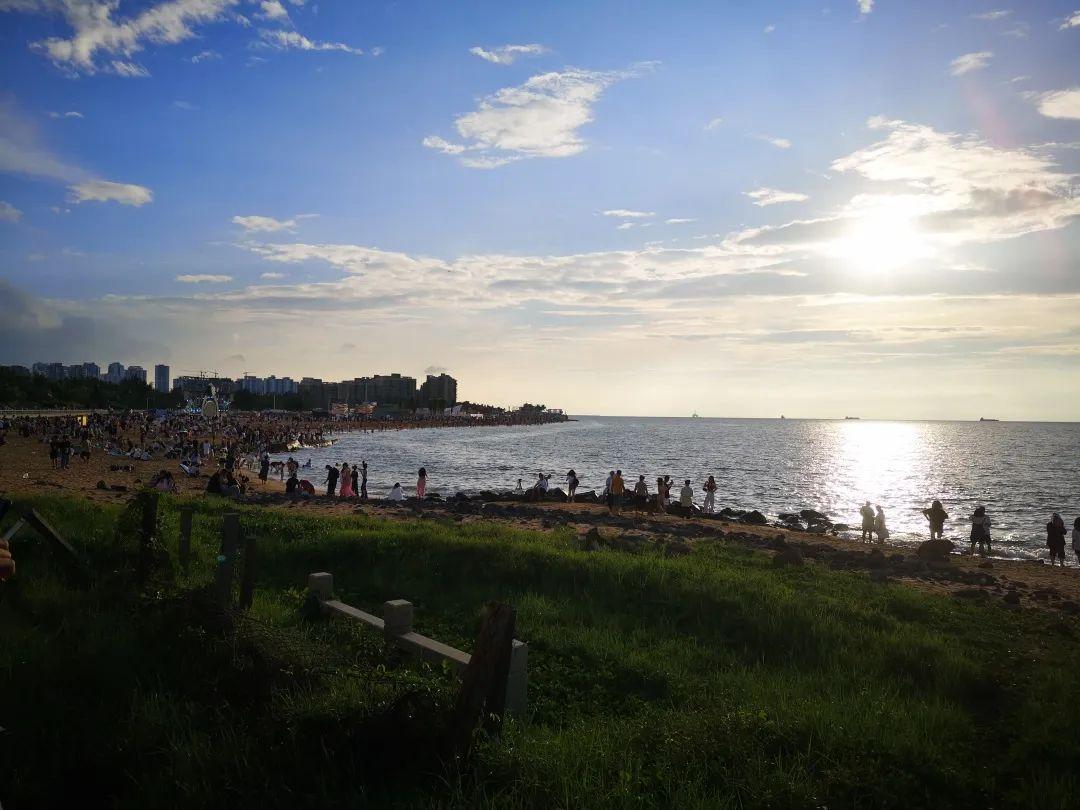 沿着碧海大道穿过江南城,远远就能看到海滩上人山人海,场面就像龙水洗节一样。太阳被云遮住了,光线变得更加柔和,海风吹过,波光粼粼,一切都是那么的舒服。