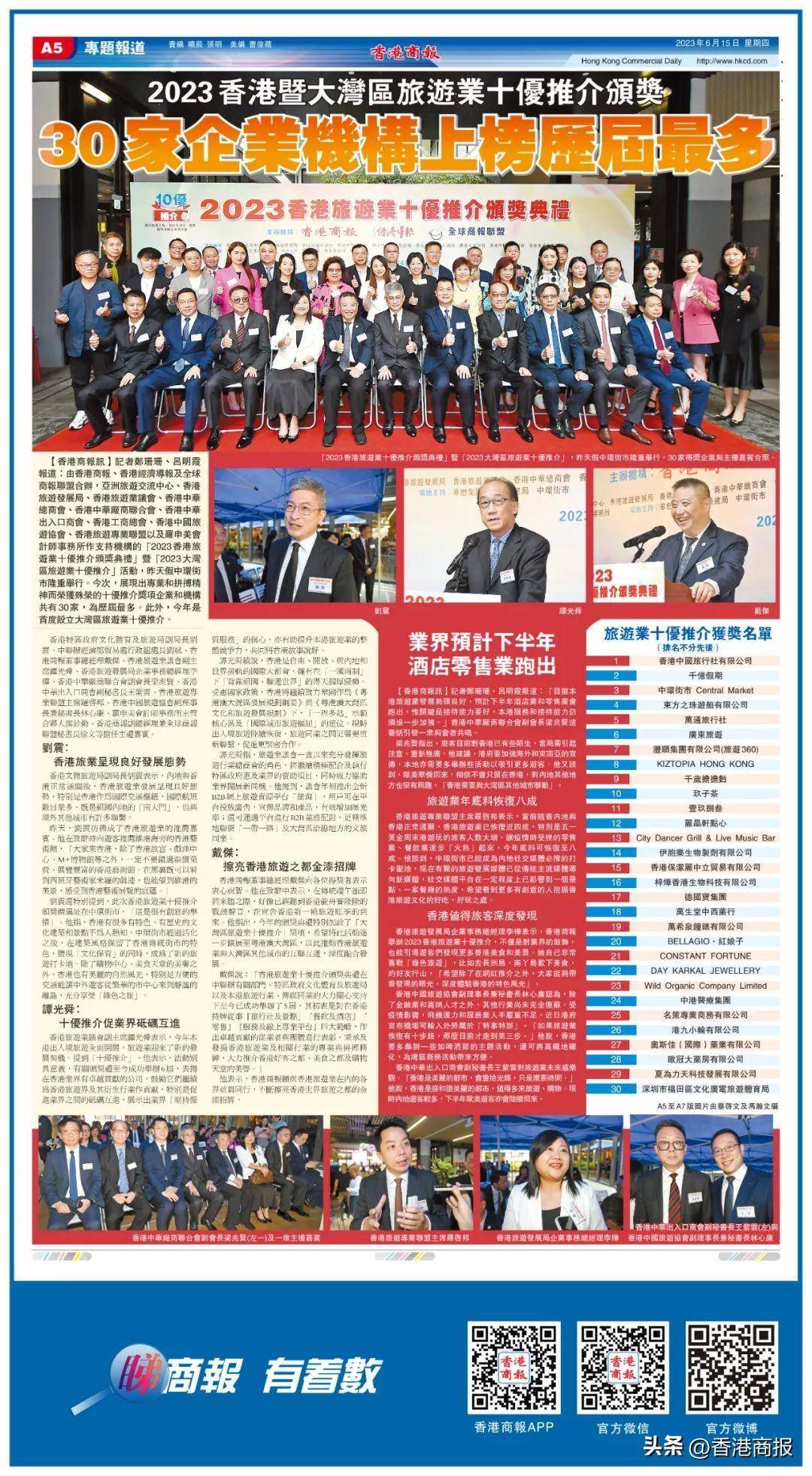 香港旅游发展局企业事务总监李华表示,香港商报推介2023年香港旅游业十大,不仅对行业有鼓励作用,也能引导游客品尝更多香港美食发现美丽的风景。她本人非常喜欢“绿色旅游”,比如去长洲岛、南丫岛享受美食,约朋友去爬山。”。