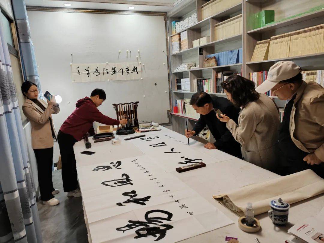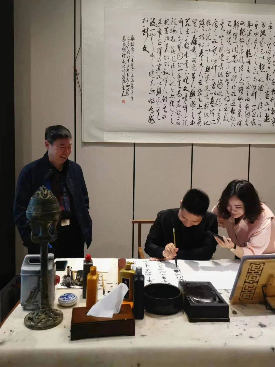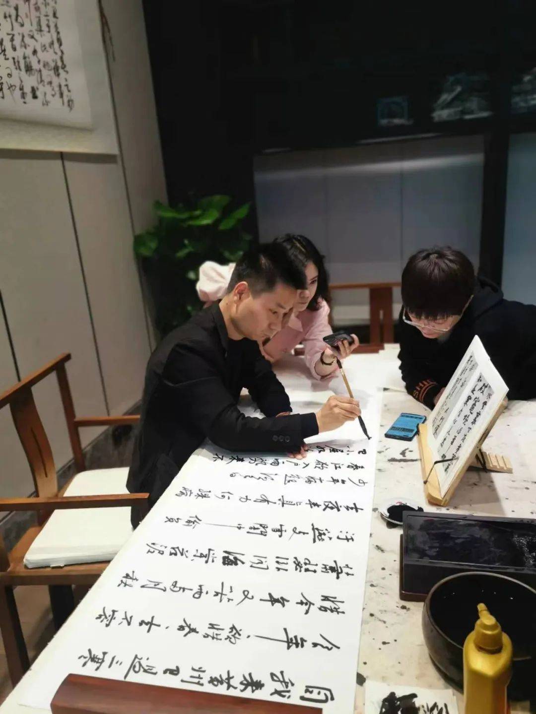 3月21日,睡到自然醒。在汉乐府酒店吃了精致的早餐,浅尝了一口香,解了前夜的酒。清雅的酒店大堂里循环播放着舒缓的音乐,一行人抹净嘴巴随我们的团长亓宏刚老师进入他的创作之地——汉乐府酒店长安国礼文化研究院书画室。环顾雅室一周,除了墨香便是书香,瞬间气氛便严肃起来。亓老师很从容地走到书案前,铺开宣纸,研墨提笔,一整套动作下来堪称行云流水。这样的熟练程度除了日复一日的坚持大概是找不到其他的解释了吧。此时的我内心是有一点点波澜的。接下来是他的每日一练,团队中他的学员小雨和覃静很自然地围拢过去,伏案学习,视频记录。