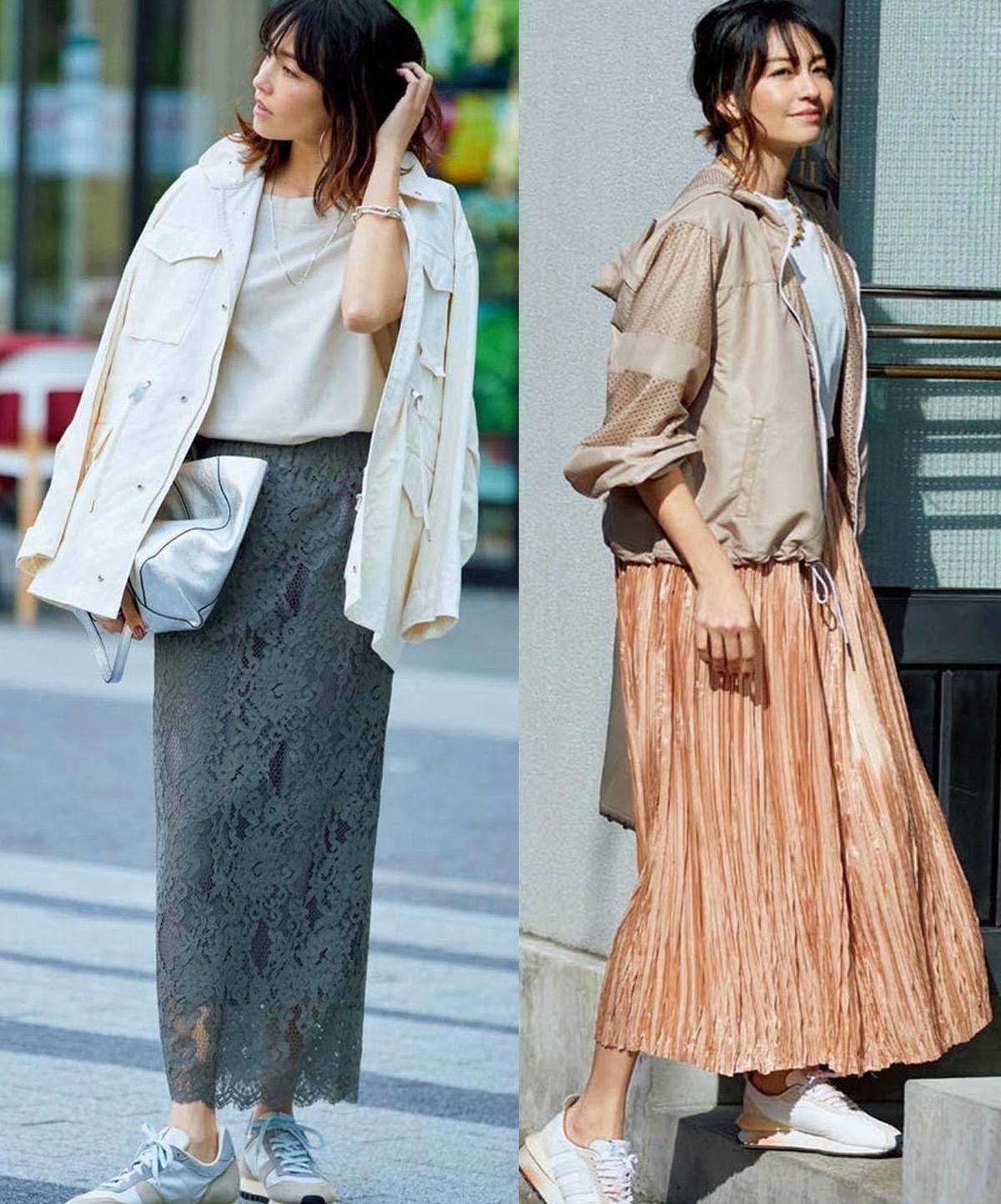 适当加大裙子与运动鞋之间的空间。完美过渡,无滞后且不影响形式。整体造型看起来明亮舒适。