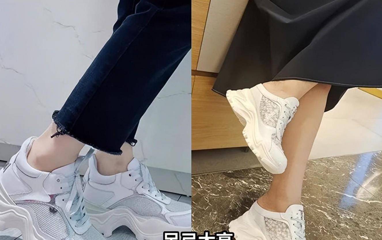 与高跟鞋相比,大多数运动鞋的增高效果可能没有那么明显,而且很多运动鞋都是平底或者稍厚的鞋底设计。一些身材矮小的人会选择这种鞋底特别厚的鞋子来增加身高。带有特别高蝴蝶结的运动鞋。