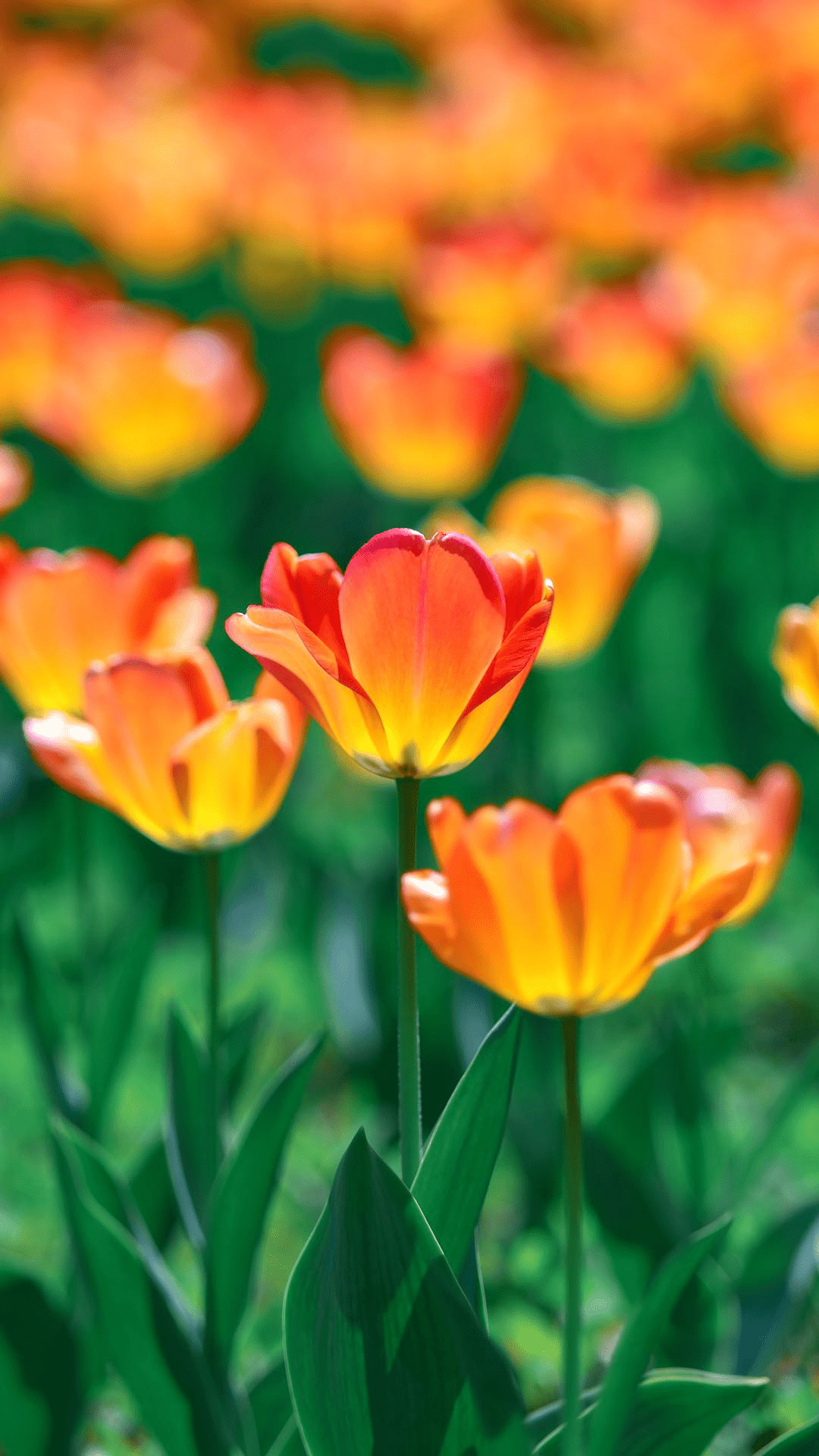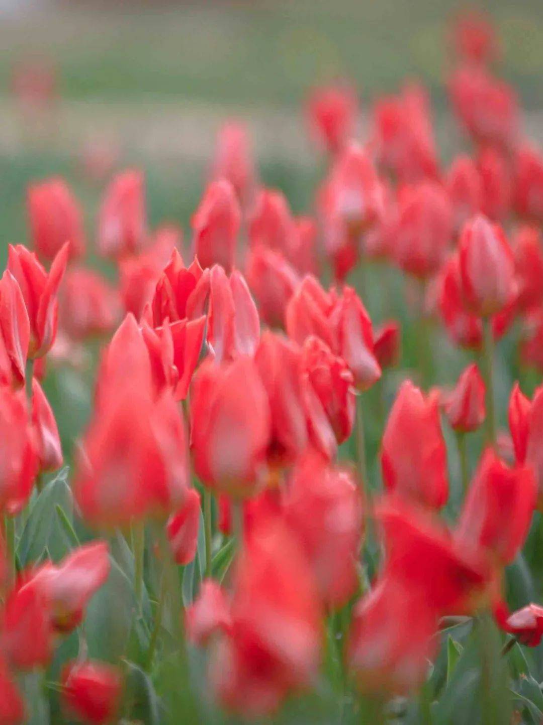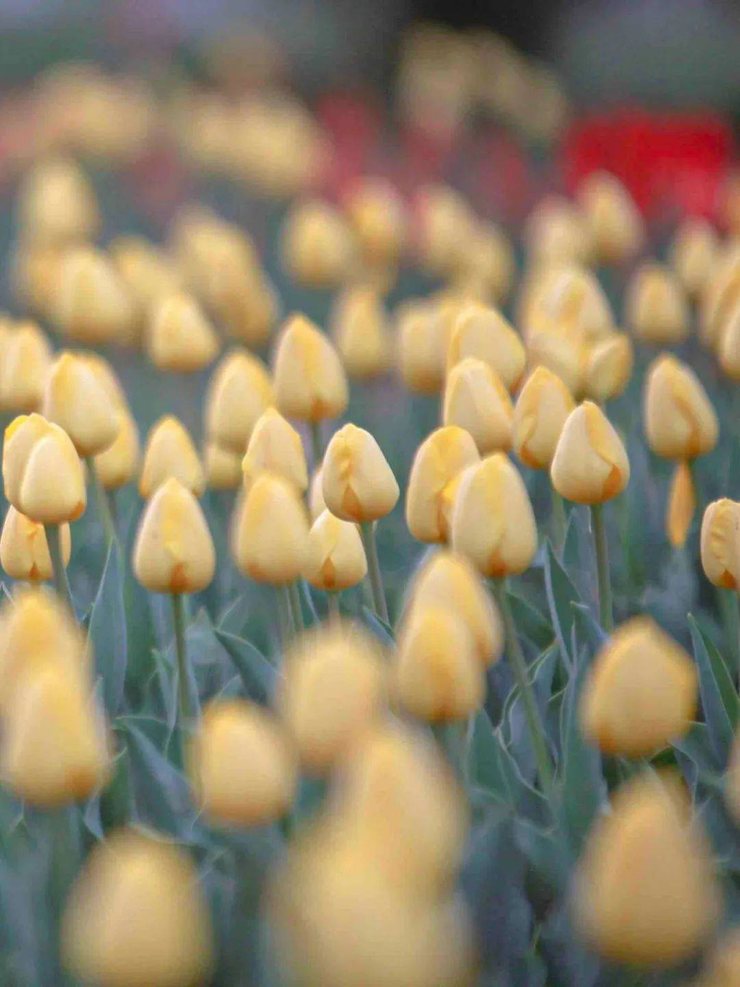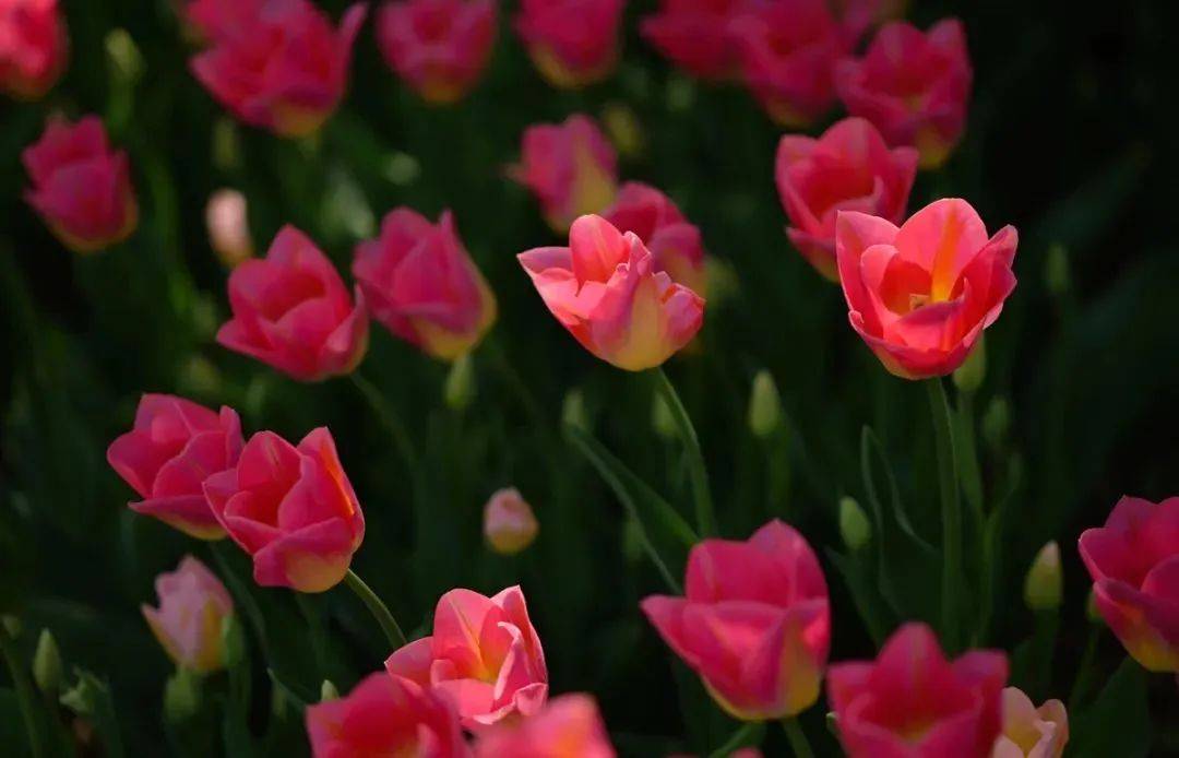 远看是一片绚烂花海,随风而动,耀眼的色彩书写着春的生机,仿佛落入画中世界;近观,则是娇嫩饱满、棵棵分明、具体的花朵,根茎细腻有韧性,叶尖微微舒展,向阳而生,优雅脱俗。