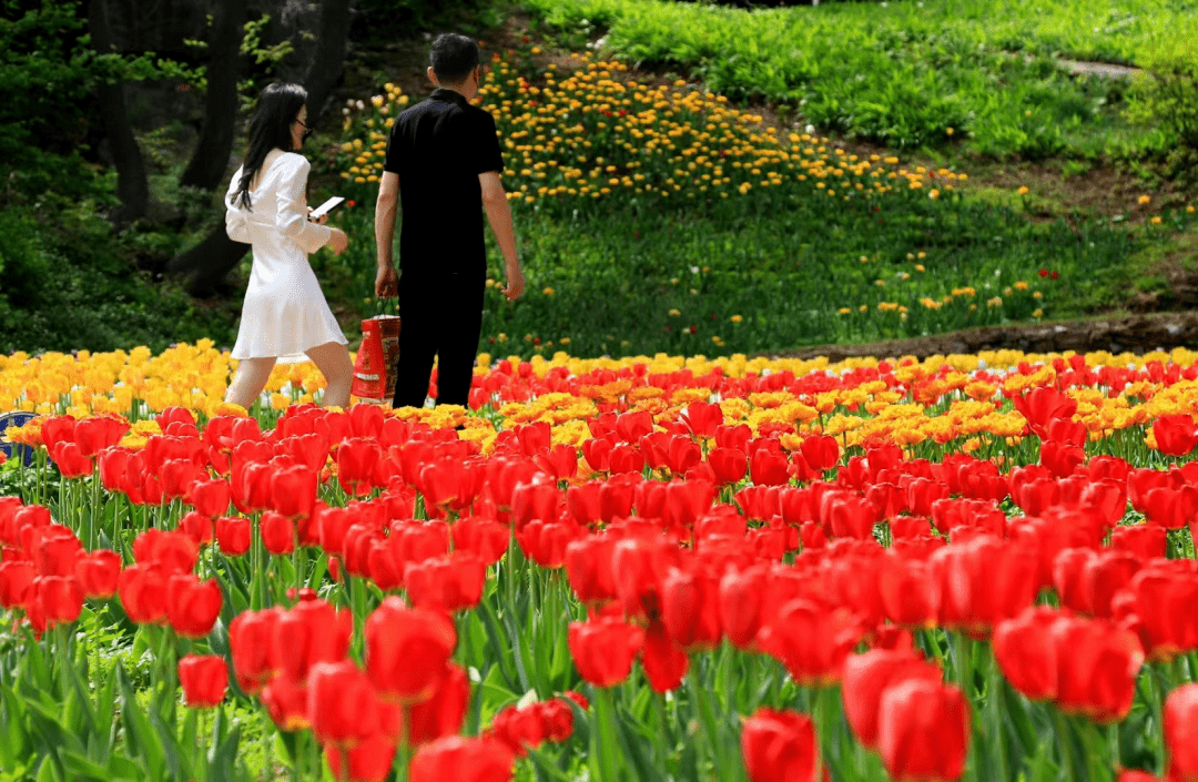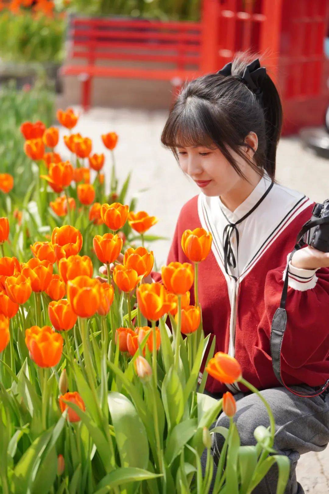 远远望去,金色阳光下是一片彩色的郁金香花海,正迎着徐徐微风翩然舞动,舒展着春日姿态。在沉浸式赏花过程中,如果你有意,也可以带一束中意的郁金香回家,在芳菲的人间四月接续浪漫。