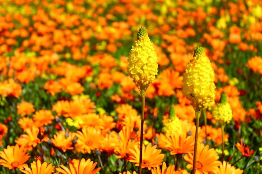 如果你在秋冬到达这里,高原的干旱、干燥和尘土飞扬会让你迅速离开。但在冬天的雨季过后,这里会神奇地变成一片“花海”,绵延几十公里,完全是自然的造物。从最早盛开的各种菊花、形态奇异的多肉到其他各类植物。据统计,在这片高原上,有1350种植物,其中有40种是博克维尔德特有的。