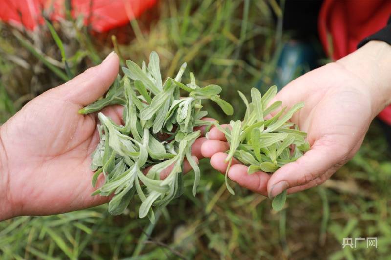 村民正在采摘清明菜(央广网发 张碧桃 摄)