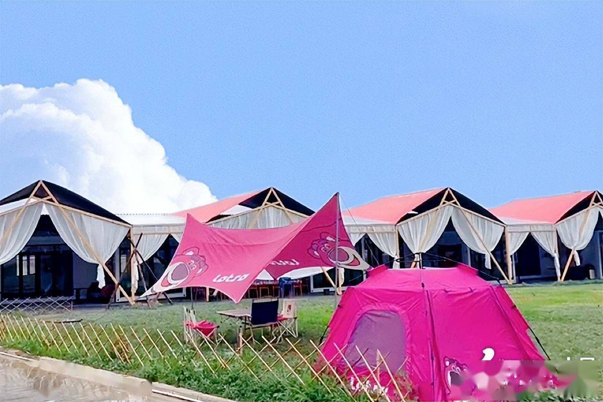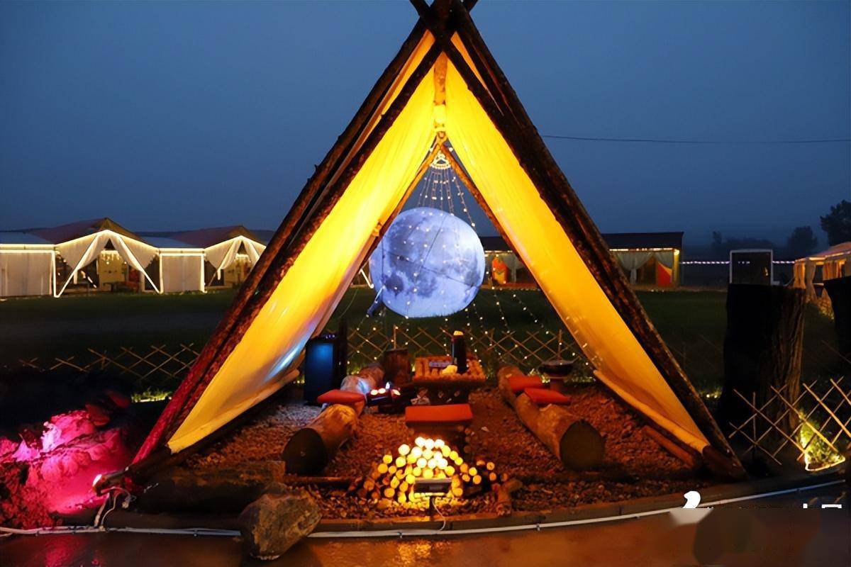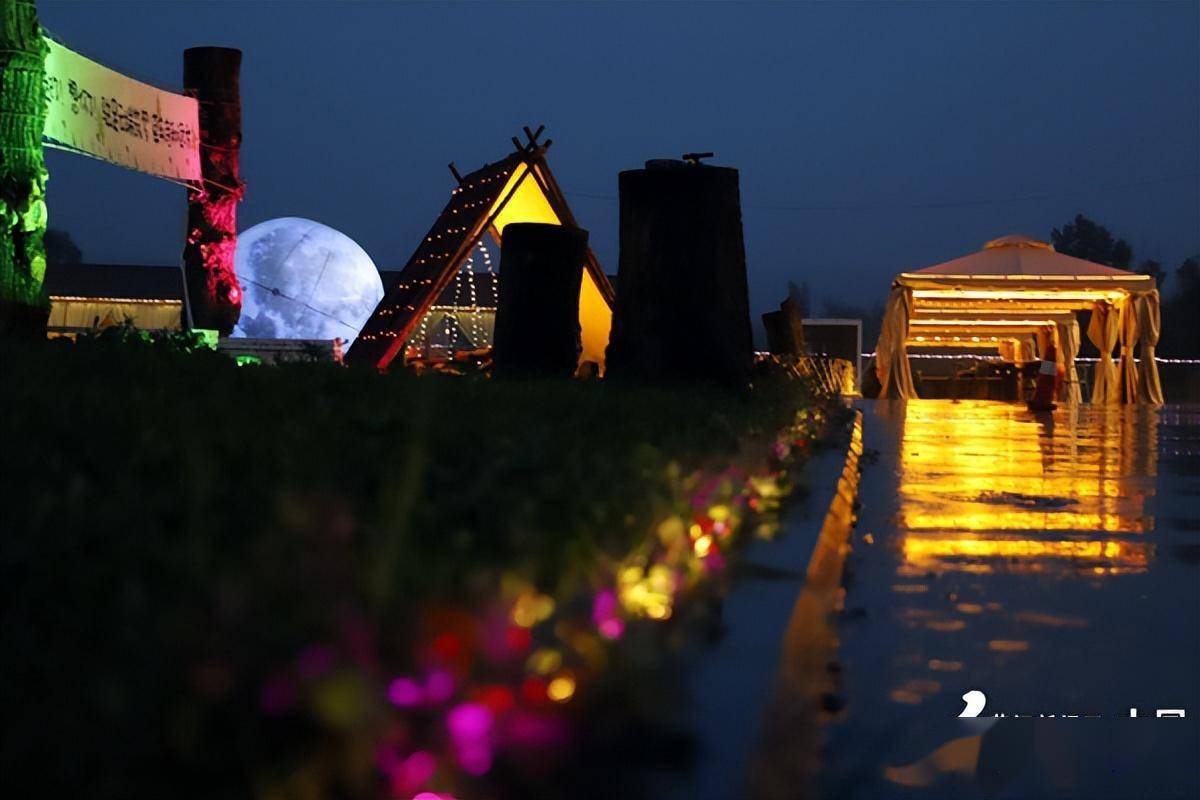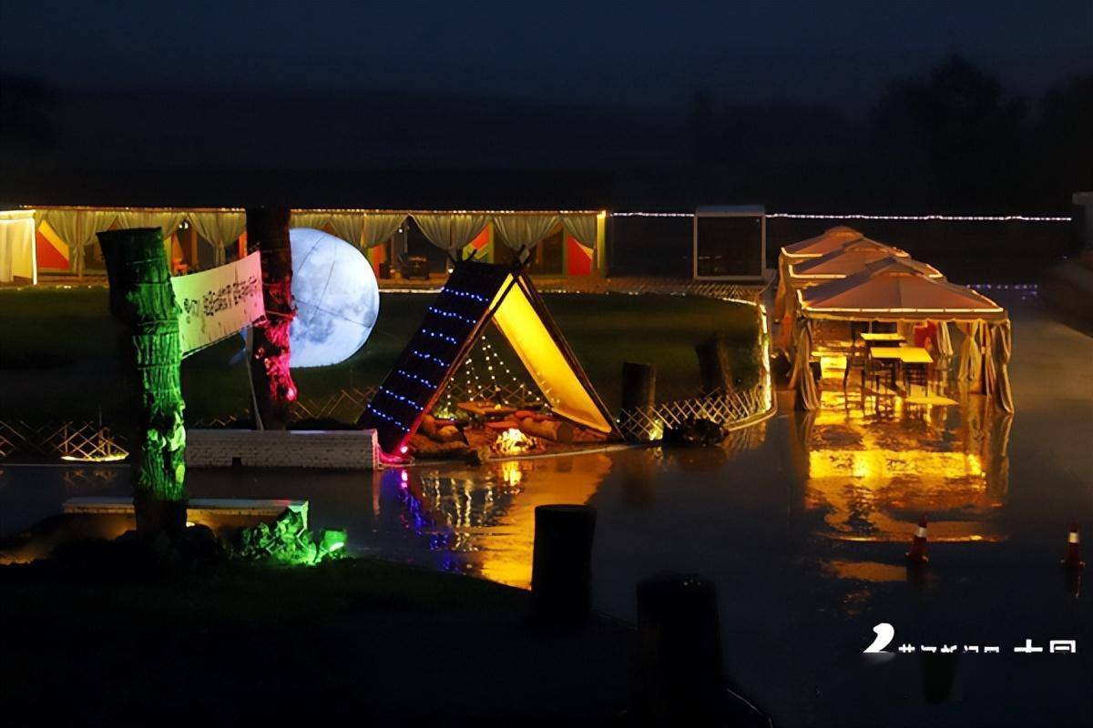 整个营地碧绿的草坪上点缀着各式帐篷,扑面而来的自然气息,让人惬意又自在!日垂西山、营灯亮起,露营基地里最浪漫的时光来临。在夏日微暖的夜风里,尽享露营和烧烤的欢乐时光,除了配有完备的露营装备之外,还有丰富的美食,各色烧烤和瓜果蔬菜一样不少。在草地上纳凉,在星空下仰望,在自然中搭起帐篷,三五好友,一杯浊酒,轻歌曼舞。在摇曳的灯光中,蝉鸣都显得如此动听,随着夕阳逐渐没入地平线,彩色的灯球和帐篷里暖黄色的灯光,让整个营地充满着欢声笑语。