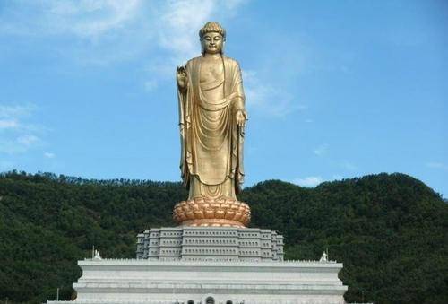 建寺之初就存在了,因为真的很大很大,所以寺庙的就想再修建一座大佛。这座大佛的真是斥巨资建造。花费12亿元,大佛的身高有108米,这还只是佛像自己的身高,如果再加上底座,也可以达到208米,真的是很大的。