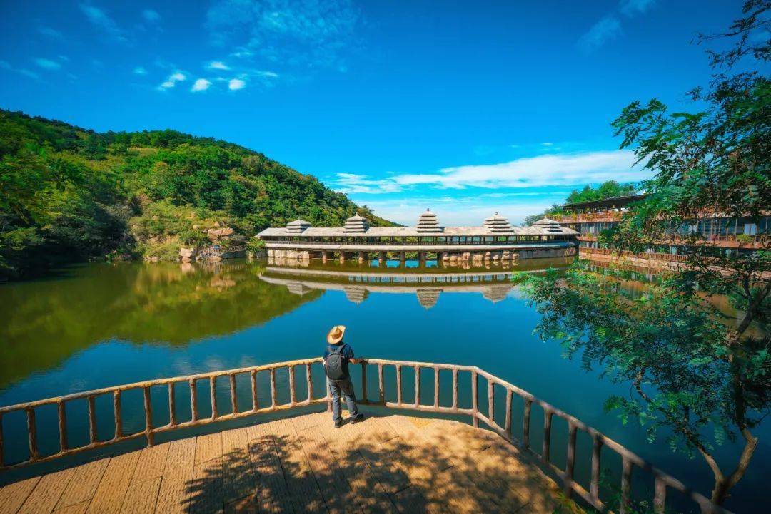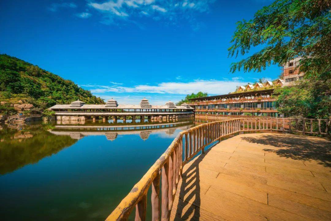 你可以漫步在宁静的风雨桥上,欣赏如镜般的乐嬉湖;还可以参观具有独特风情的雨林馆。