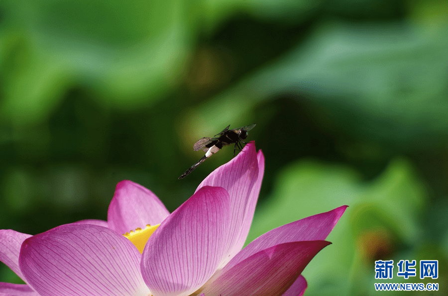 近日,在江西省抚州市广昌县,长桥乡香花湾景区的荷花竞相开放,荷花的红与荷叶的绿相映成趣,偶有蜻蜓立于上头。时值盛夏,“中国白莲之乡”广昌的莲花进入盛花期,一幅“接天莲叶无穷碧,映日荷花别样红”的景色,美不胜收。