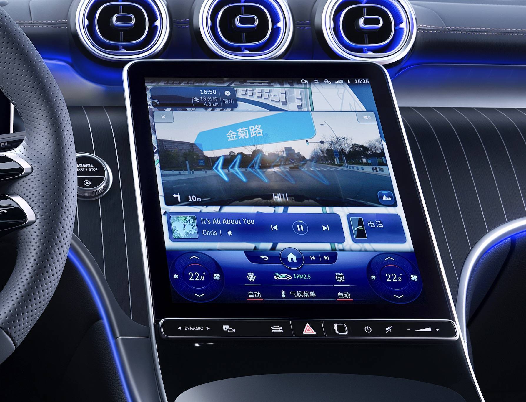 奔驰全新长轴距GLC SUV的智能交互能力也获得了提升,第二代MBUX智能人机交互系统,具备 “零层级界面”,可将导航等重要应用始终置于桌面之上,随手就能调节导航、空调温度、播放音乐等。AR-HUD增强现实抬头显示功能十分好用,显示面积较大,可清晰智能呈现车辆和路况信息。智能语音助手也变得“聪明”了,具备延迟聆听和双语音指令功能。不过,实话实说,与一些国产智能汽车比起来,奔驰的智能交互还没有做到十分自如,日后还有进一步的优化空间。