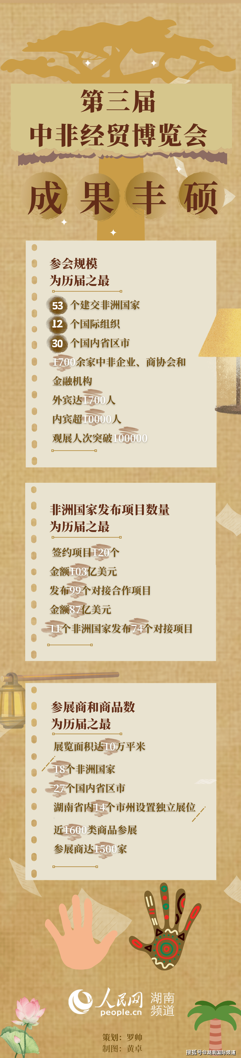 参展商和商品数历届之最。本届博览会展览展示内容丰富,主展馆共设“六馆一区”,展览面积达10万平米,较上届增加近3万平米。18个非洲国家、27个国内省区市、湖南省内14个市州设置独立展位。