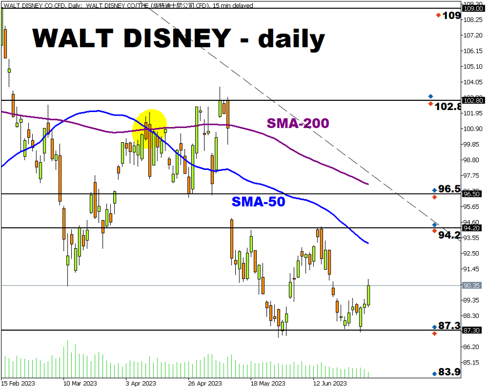 迪士尼股价正在试图扭转下降趋势