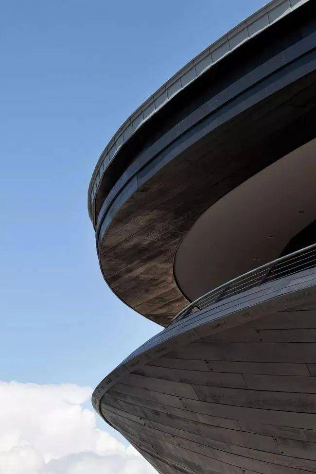 为了让建筑与海洋遗产的联系更为紧密,木头被染成了黑色,反映了英国传统舢板棚建筑特征。主建筑的两翼各有一座长方形建筑,其中一个包含主入口和前台接待、咖啡厅以及商店等功能,另一个里面则设置了学习中心和主要机械设备用房。建筑整体为现代建筑形式,外观优雅简洁,散发着神秘的气息,吸引游客来其中参观探索。
