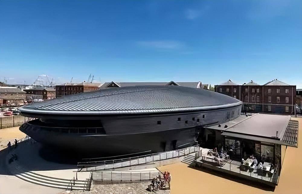 该博物馆位于一座十八世纪晚期的干船坞中,船坞本身便被列为历史遗迹,此外它还与“胜利号”相邻,附近有数栋海军建筑,复杂的历史文脉让设计面临诸多挑战。博物馆的高度要尽可能低,以与周边建筑的比例和尺度相协调。因此,建筑师设计了一个低调的壳形金属屋顶,内部空间也被缩小,并进行了精确的环境控制,以满足船体储藏的要求。