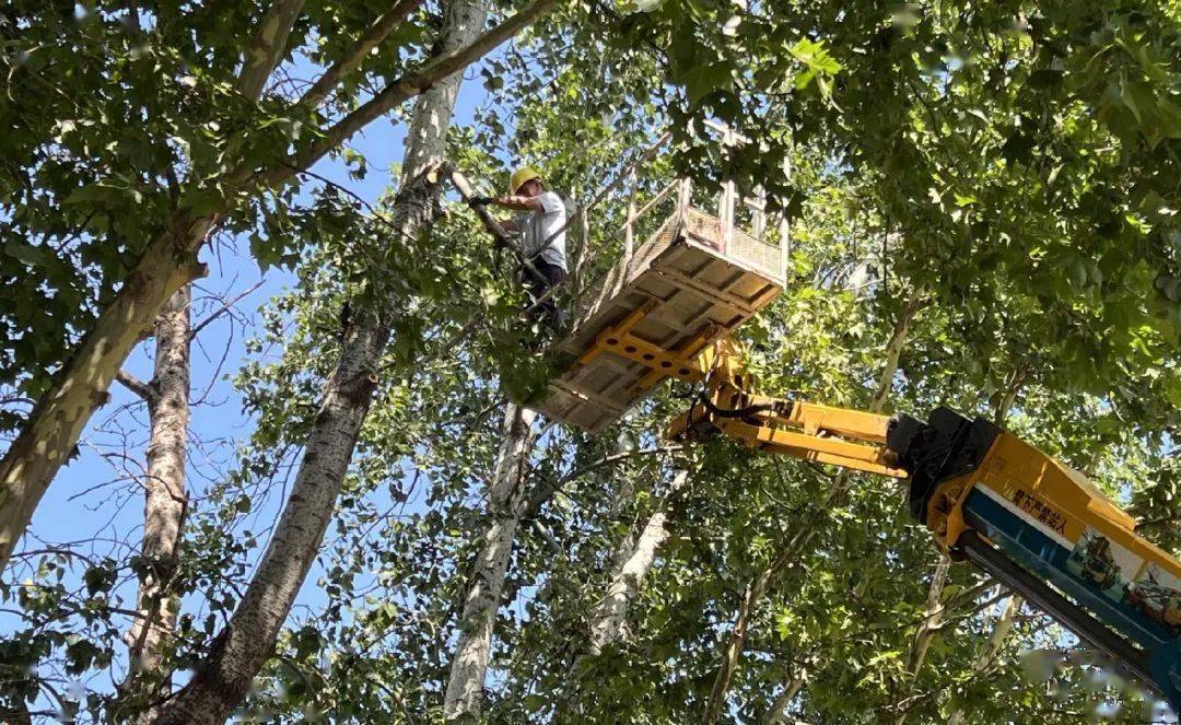 为防止因狂风、暴雨天气造成树木断枝、倒伏而引起的伤人、伤物等灾害事故的发生,近日,市裕西公园组织绿化专业人员,对园区绿植进行了隐患排查和修剪整形,消除汛期树木安全隐患,确保游客生命财产安全。