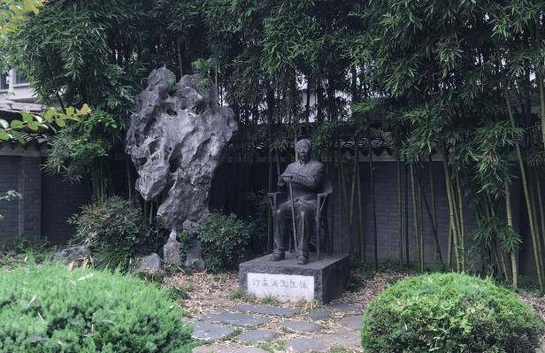 在沙孟海故居的庭院里小憩了一会,阳光下沙孟海先生的雕像在翠绿的环抱中安然自若滴凝视着迎来送往的游客们。
