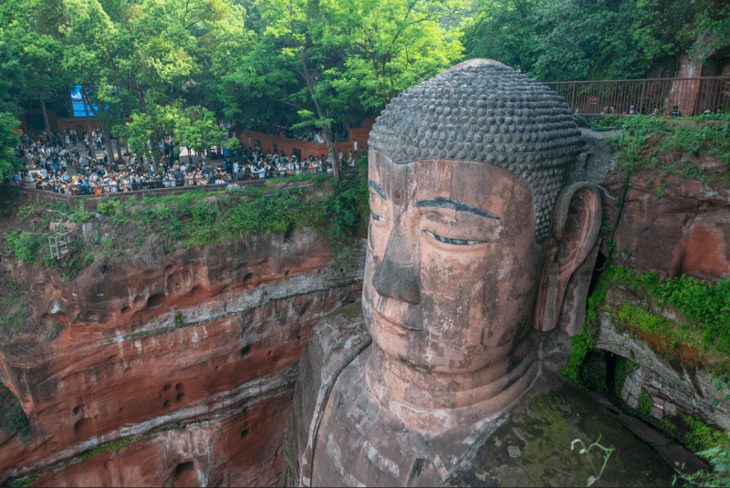 2023年5月1日,四川乐山大佛景区,游客们有序观大佛。图/IC photo