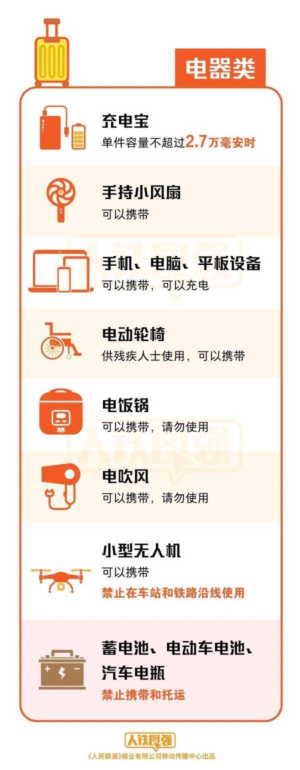 铁路部门提示广大旅客,电饭锅属于大功率电器,高铁列车座椅上的插座电源仅能满足旅客随身携带手机、电脑等小功率电子产品充电,大功率电器容易造成设备电路损坏,影响行车安全。同时,电饭锅产生的水蒸气容易引发车厢内的烟雾报警,影响列车运行。