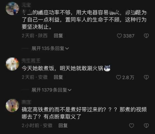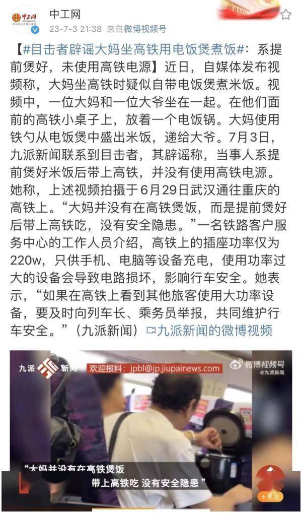 后经目击者辟谣称,当事人的确是提前煲好米饭后带上高铁,并没有使用高铁电源。