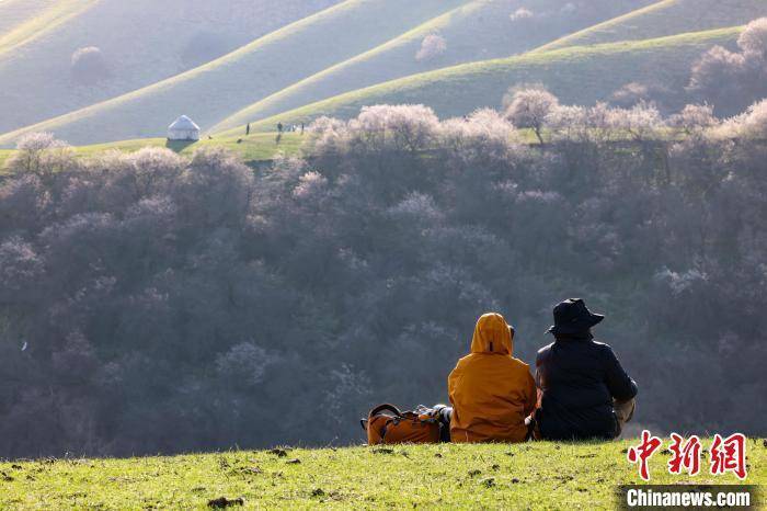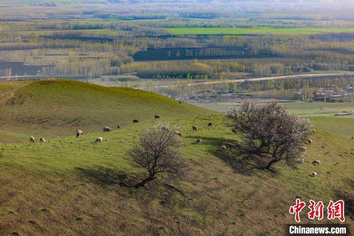 4月,和煦的春风吹醒了沉睡的大地。也吹开了新疆新源县那拉提杏花谷里的野杏花。在绵延起伏十几公里的山谷间花开正艳。山谷中间刚刚被春草染上了一抹绿色,一树树绽放的野生杏花如同用画笔点染在绿色画布上。马牛羊悠闲地在杏花林中吃草。草原的新绿搭配杏花的粉嫩,再点缀以牧民的毡房和悠闲的牛羊,引来八方游客纷纷走进杏花谷,欣赏粉白的杏花。