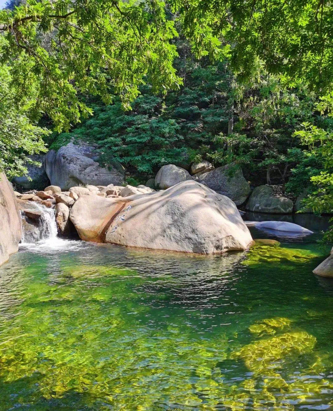 夏天的崂山北九水,林间清凉、溪水潺潺,