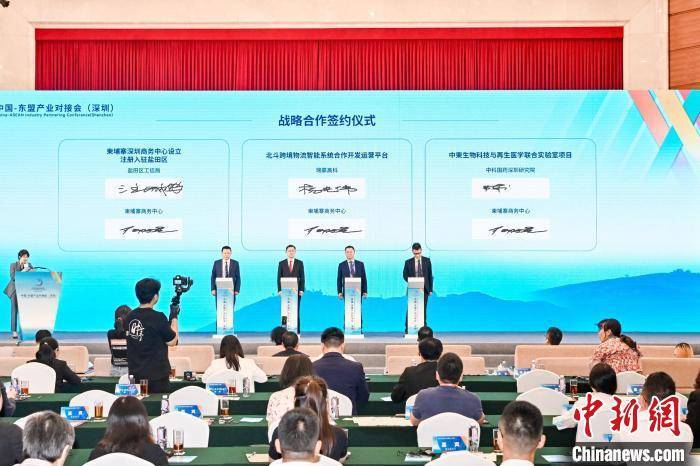 中新网深圳7月5日电(郑小红 王舒蕾)中国—东盟产业对接会(深圳)5日在深圳举行。来自柬埔寨、菲律宾、泰国、越南、新加坡等国的企业、机构代表,与深圳等地的30余家新兴产业企业和机构代表签署20项战略合作框架协议,意向合作金额超50亿元人民币。