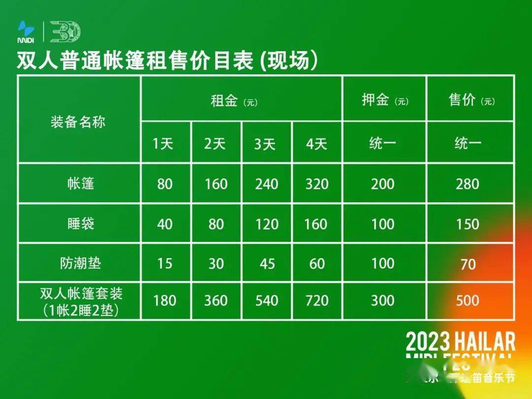 5. 帐篷及配套设备的租金和押金可使用现金、支付宝、微信支付;