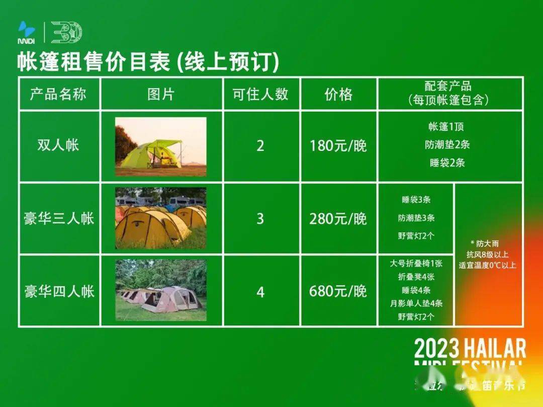 3. 线上预约租售的乐迷凭线上预订信息到租赁处领取帐篷;