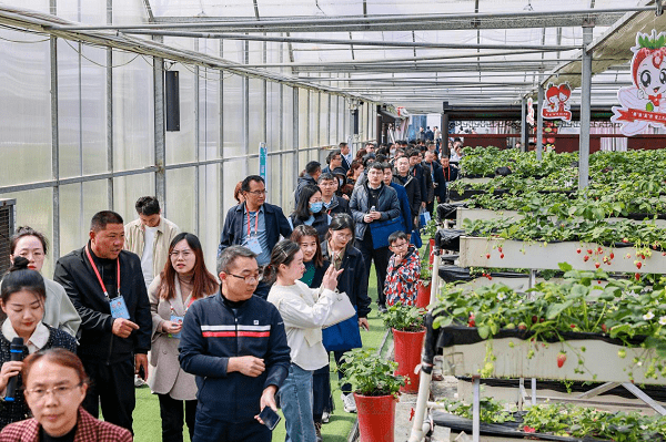 游客参加2023靖江旅游节·樱花草莓节,走进草莓科普馆(央广网发 盛义 摄)