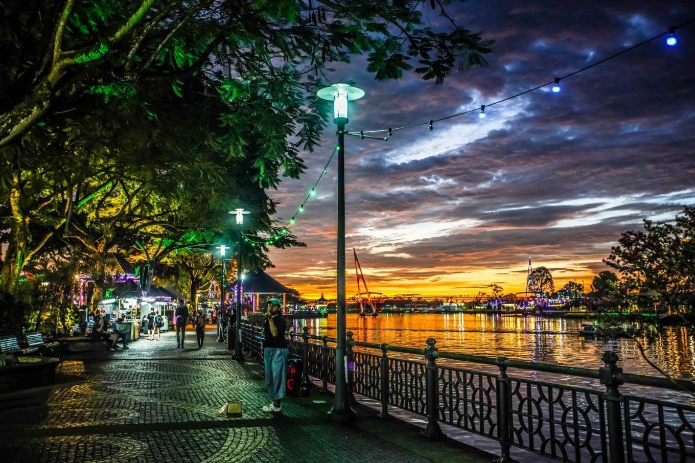 之所以选择这两家酒店,是因为靠近砂拉越河,步行过桥看水舞秀灯笼非常方便。