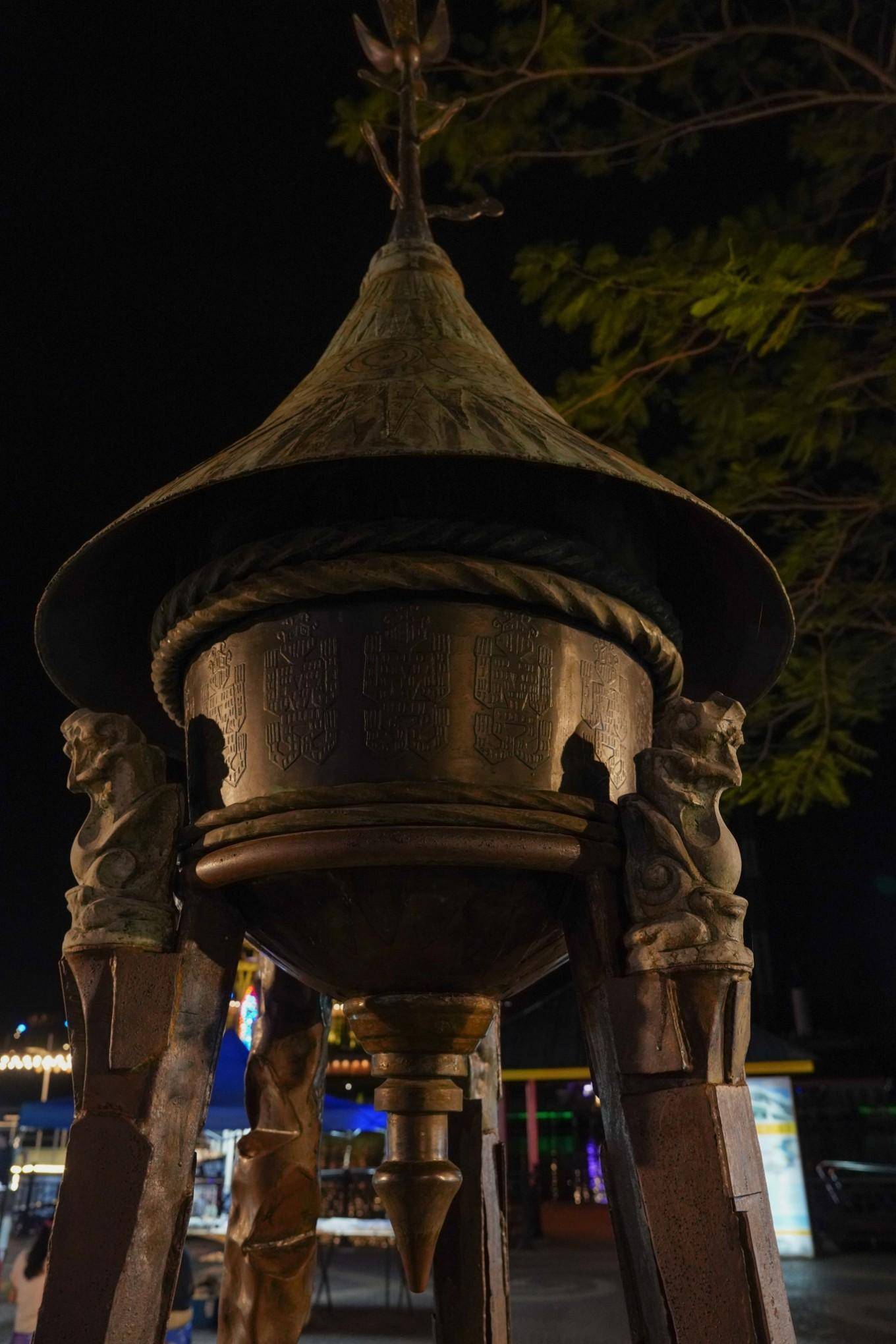 它由木头雕刻而成,并绘有色彩缤纷的图案,堪称雕刻佳品。