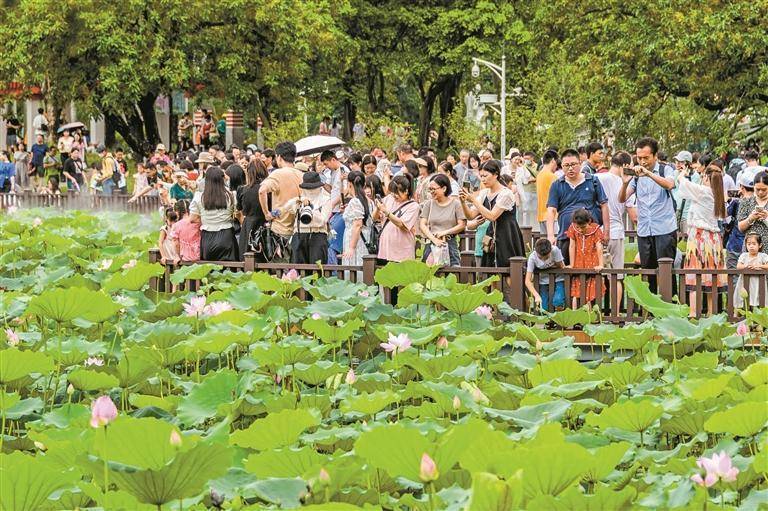 ▲市民游客赏荷观景。 深圳晚报记者 伊宵鸿 通讯员 钟子杰 摄